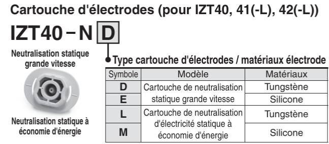 Cartouche d'électrodes pour ioniseur type barre aiguille électrode silicone buse économie d'énergie série IZT40 SMC