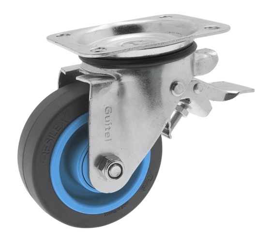 Roulette pivotante E5B-63 / E6L-63 à platine non tachant gris pare-fils étanche à billes manutention souple tous sol avec frein stop fix 300 kg 374252 Guitel Hervieu