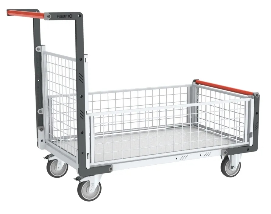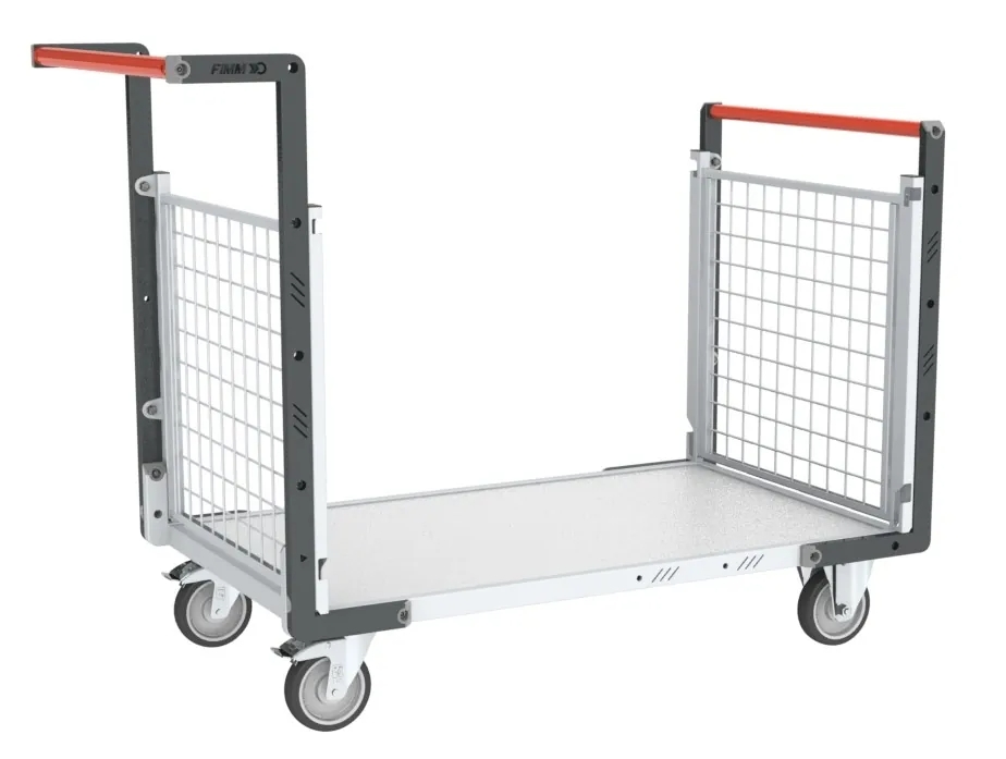 Chariot modulaire grillagé 2 dossiers 2 ridelles et plateau en bois Fimm
