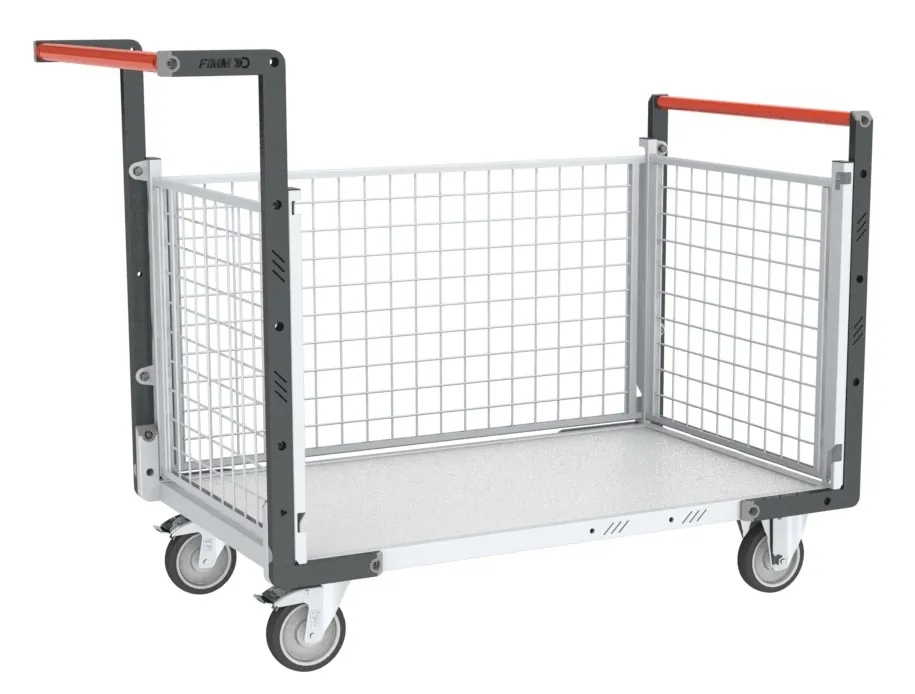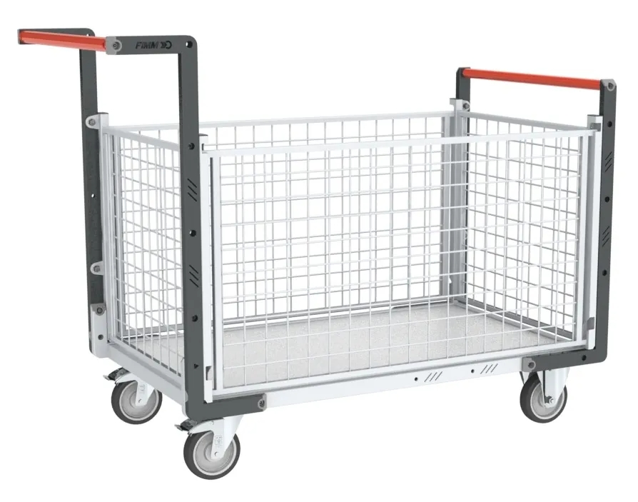 Chariot modulaire grillagé 2 dossiers 1 ridelle et plateau en bois Fimm