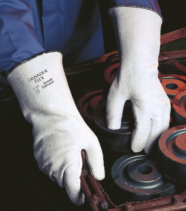 Avec les gants Crusader Flex 42-474, Ansell propose des niveaux élevés de protection et de confort dans des conditions de chaleur moyenne. Solution efficace contre la chaleur de contact en atmosphère sèche, ils autorisent la manipulation de matériaux atteignant 180°C. De plus, les Crusader Flex sont résistants à l'abrasion ainsi qu’à la coupure niveau 2, et offrent une protection contre les blessures mineures.