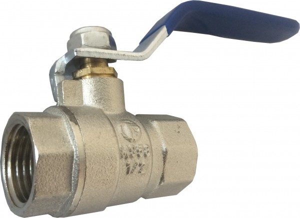 Vanne à boisseau sphérique 1"1/2 femelle femelle en laiton nickelé, s'actionne grâce à un levier en acier nickelé 1/4 Tour.