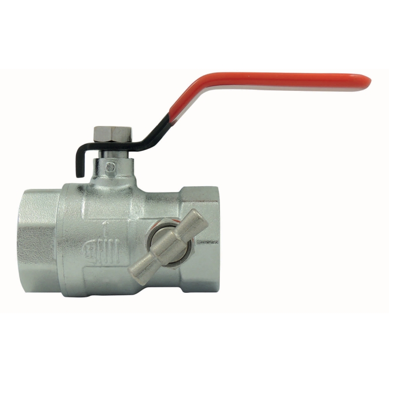 Vanne à boisseau sphérique 2 voies F/F avec purge 1"1/2 BSPP laiton à poignée plate rouge série Advance 226 Ezfitt