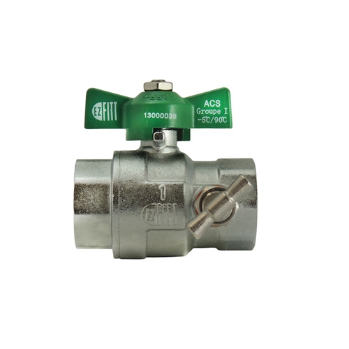 Vanne à boisseau sphérique 2 voies à purge F/F 1" BSPP laiton chromé poignée papillon verte certifiée NF079 série 528 Ezfitt