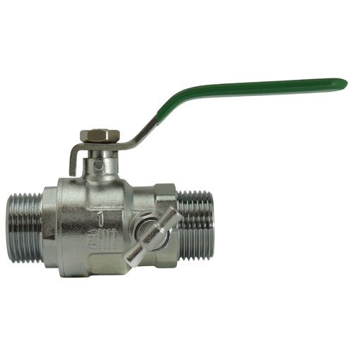 Vanne à boisseau sphérique 2 voies à purge M/M 3/4" BSPP laiton à poignée plate verte certifiée NF079 série 530 Ezfitt