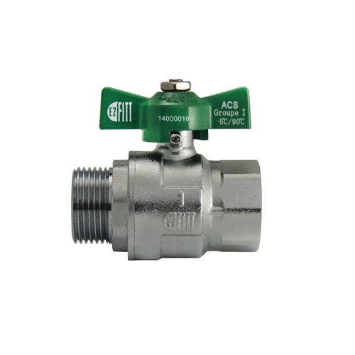 Vanne à boisseau sphérique 2 voies M/F laiton à poignée papillon verte certifiée NF079 série 524 Ezfitt