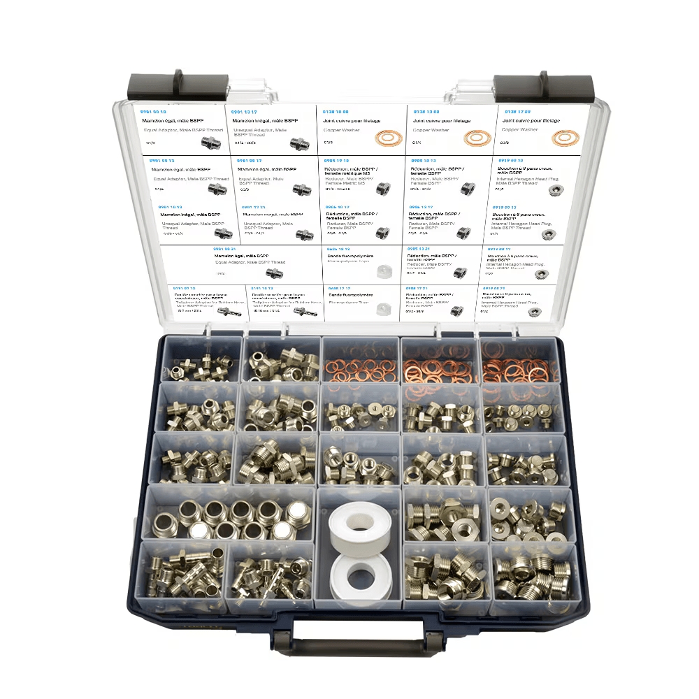 Valise d'adaptateurs en laiton nickelé BSPT Parker Legris