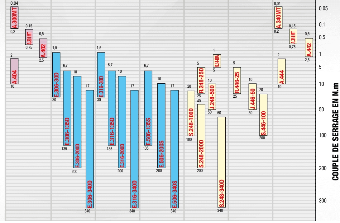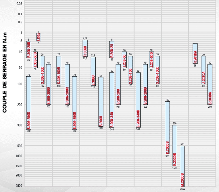 Les couples de serrage sont calculés à 85 % de la limite élastique (documentation E 25-030).